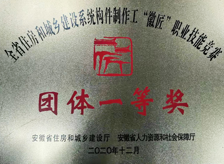 全省住房和城鄉(xiāng)建設(shè)系統(tǒng)構(gòu)件制作工“徽匠”職業(yè)技能競賽團(tuán)體一等獎(jiǎng)